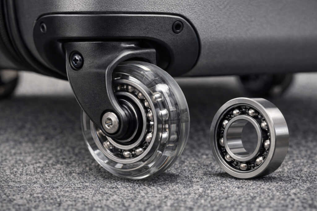 スーツケースの引き心地を左右する核心部分は、車輪の中心に組み込まれたベアリングにあります。