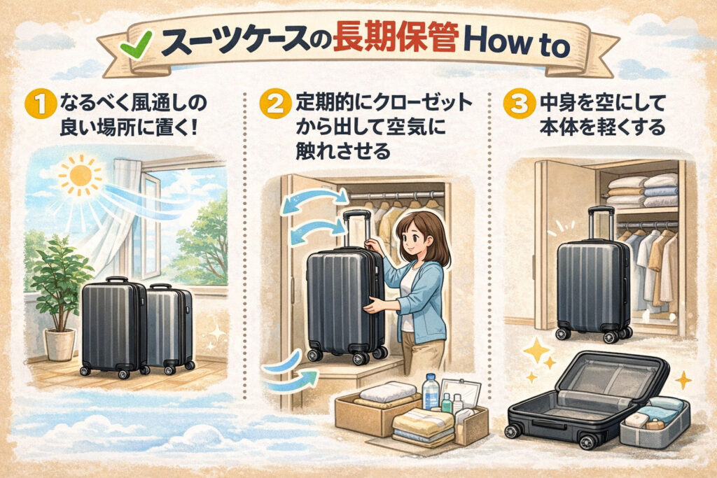 スーツケースを使っていない時の環境も、キャスターの耐久性に多大な影響を及ぼします。