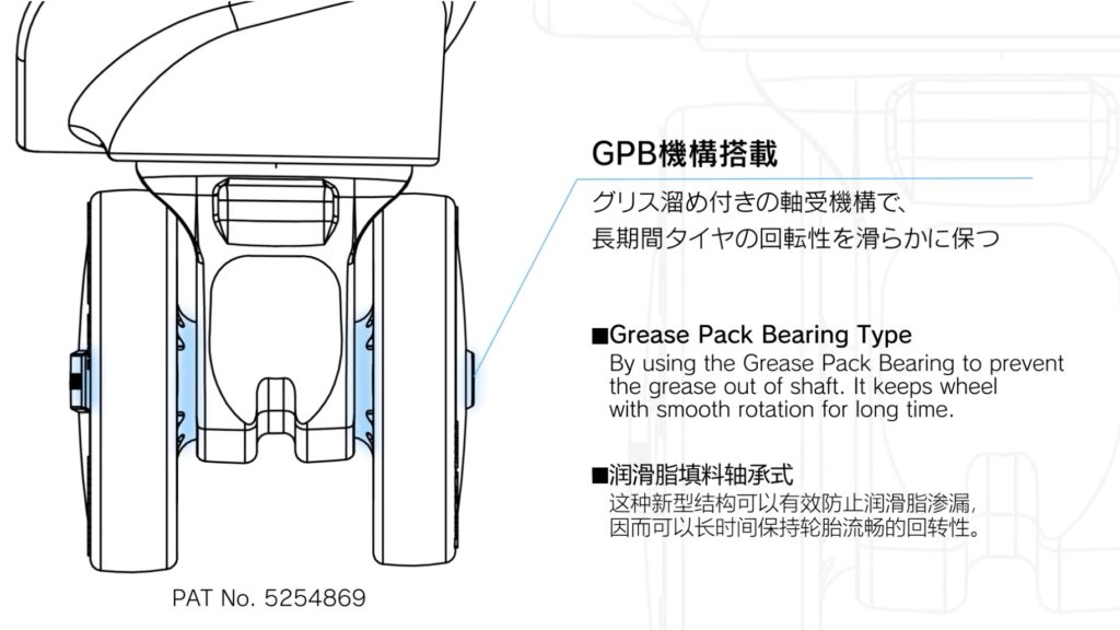 これにより摩擦抵抗が極限まで抑えられ、従来の約3分の1の力で動き出すことができるほど、圧倒的に滑らかな操作感を実現しています。