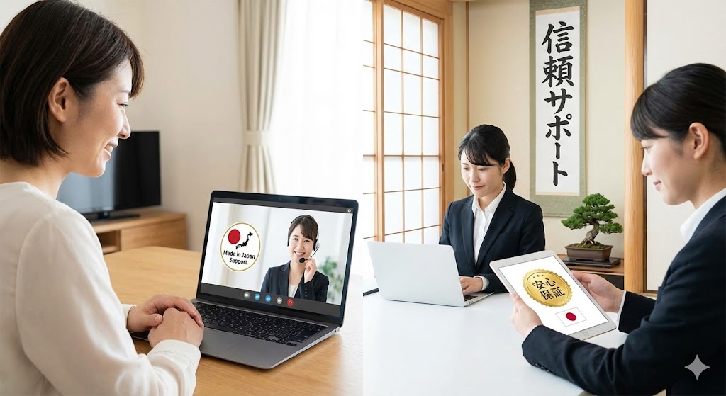 企画から開発、カスタマーサポートに至るまで日本国内の基準で管理されており、購入後のアフターフォローも日本語で丁寧に対応してもらえます。